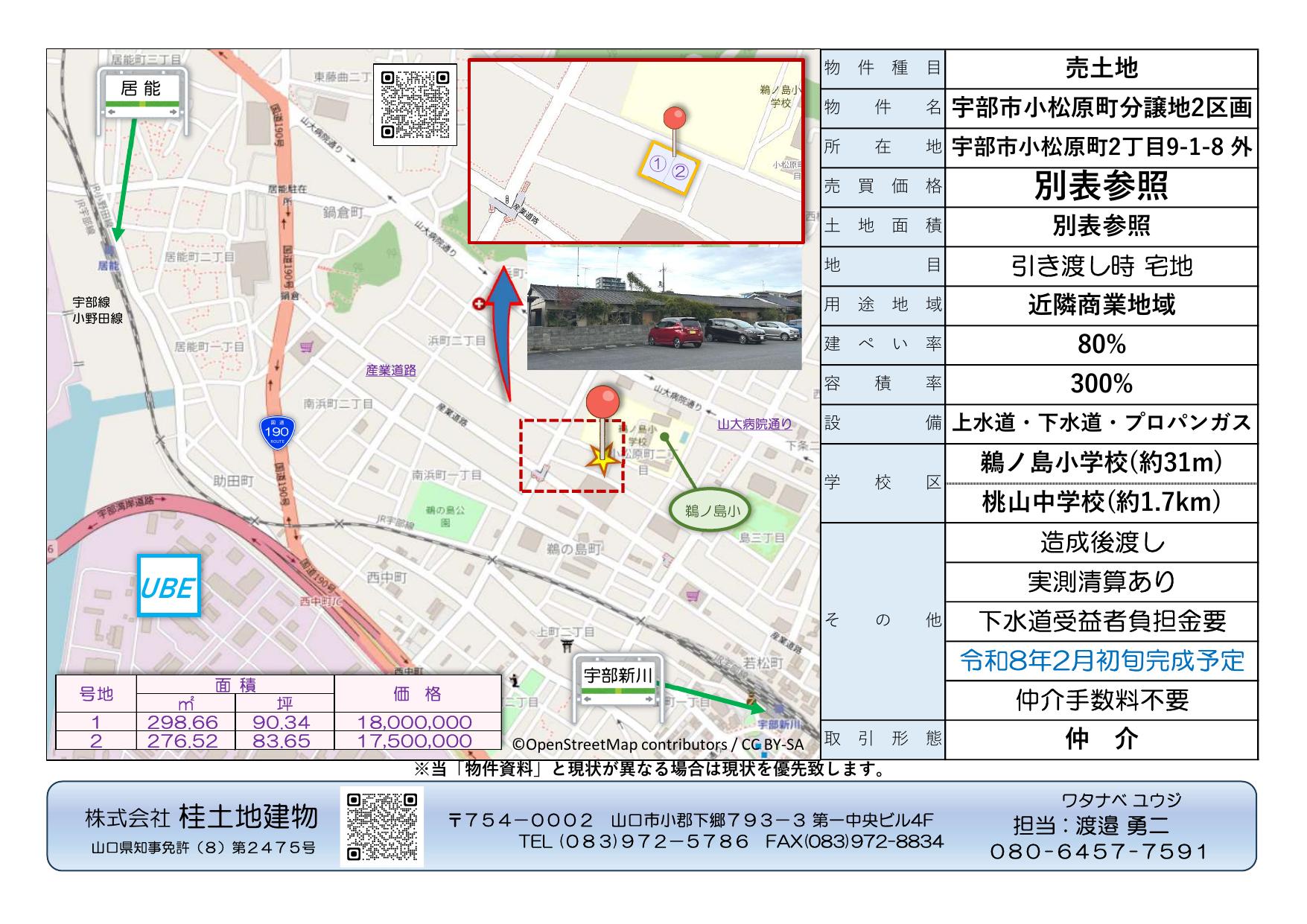 宇部市小松原町(鵜ノ島小 ソバ)売土地